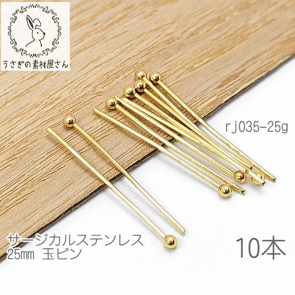 玉ピン 約25mm サージカルステンレス ハンドメイド 基礎金具 ボールピン 特価 ゴールド色 10本