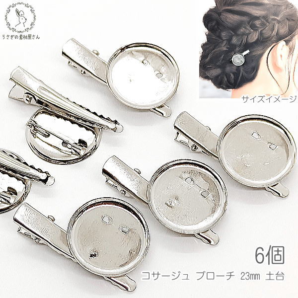 コサージュ ピン ブローチ パーツ 金具 皿23mm クリップ 40mm 6個 特価 造花ピン ハンドメイドパーツ うさぎの素材屋さん つまみ細工 部品 土台
