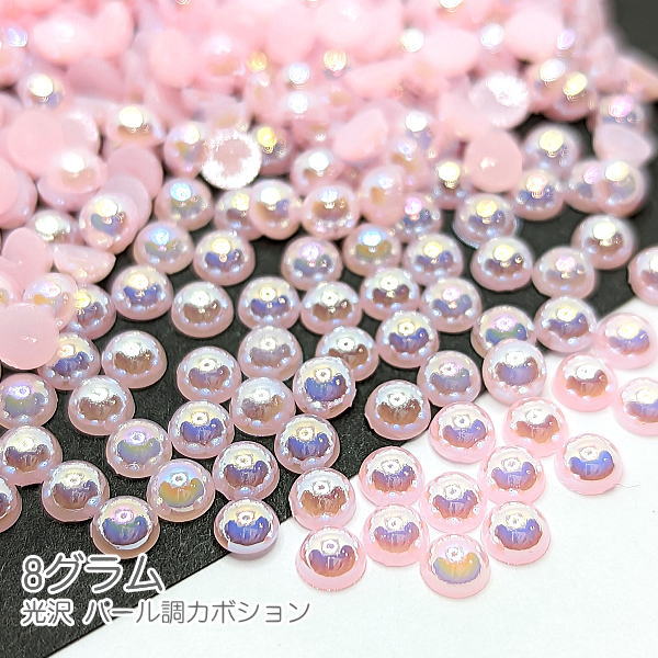 カボション 4mm 光沢 パール調 デコパーツ 半円 ハーフ レジンやネイルに たっぷり 約8グラム/ピンク