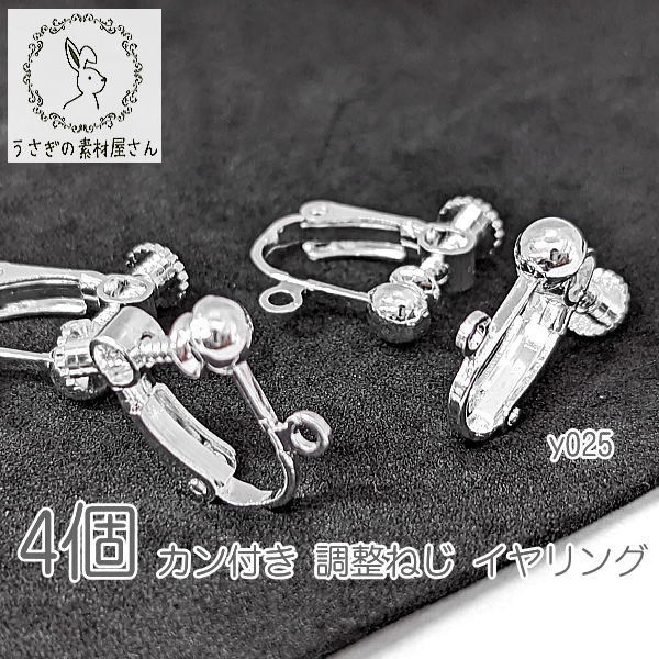 イヤリング ハンドメイド用 カン付き 調節ネジ バネ 銅製 ノンホール シルバー色 4個
