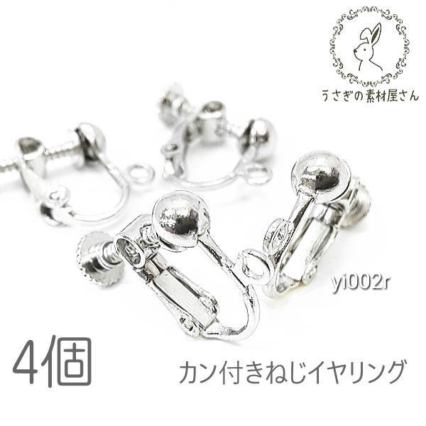 イヤリング ハンドメイド用 カン付き 調節ネジ バネ 真鍮製 ノンホール ロジウム色 4個