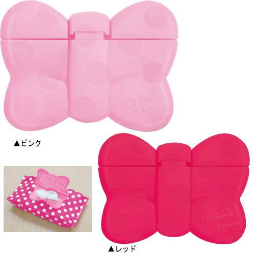 (おまかせ便で送料無料)ディズニー携帯用ウエットティッシュふた ミニーマウス(リボン)ピンク レッド 日本製 おしりふき