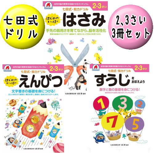 (おまかせ便で送料無料)七田式 知力 ドリル 2歳 3歳 3冊セット はじめのいっぽ はさみ えんぴつ すうじをおぼえよう 鉛筆 幼児用ドリル