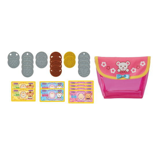 メルちゃんの可愛いお金セット。スーパーや自動販売機でのおかいものごっこに必要なコインとお金のセット。1円から9,999円までお金をつかったお買いものごっこができます。