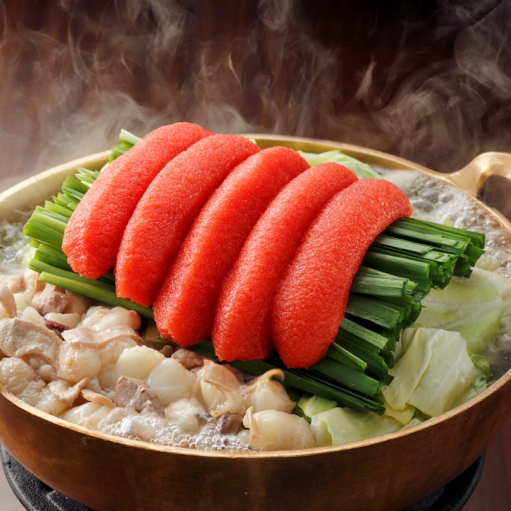 特製スープの旨みダシと明太子の奥深い辛味の旨みが新鮮なモツとからみあい、濃厚でコクの旨味溢れる鍋に仕上がります。