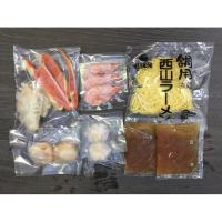 ゆでずわいがにカット(100g)×1、ボイル海老×3、ボイル帆立×2、かに入つみれ×2、冷凍生ラーメン(80g)×1、たれ(50ml)×2(濃縮:塩仕立て)