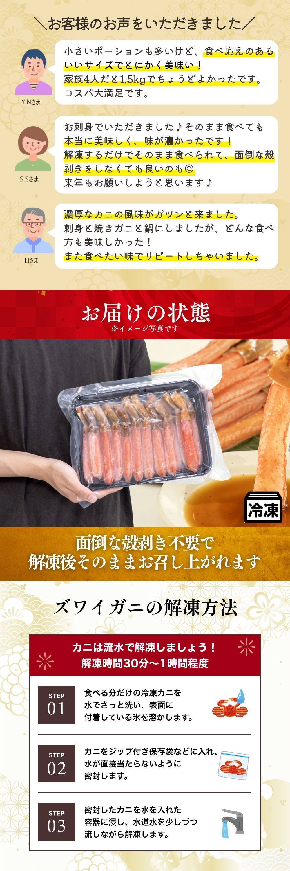 生ズワイポーション 4L 20本入 500g カニ ズワイガニ ずわいがに ズワイ蟹 自宅用 お歳暮 御歳暮 正月 かに 蟹 生食