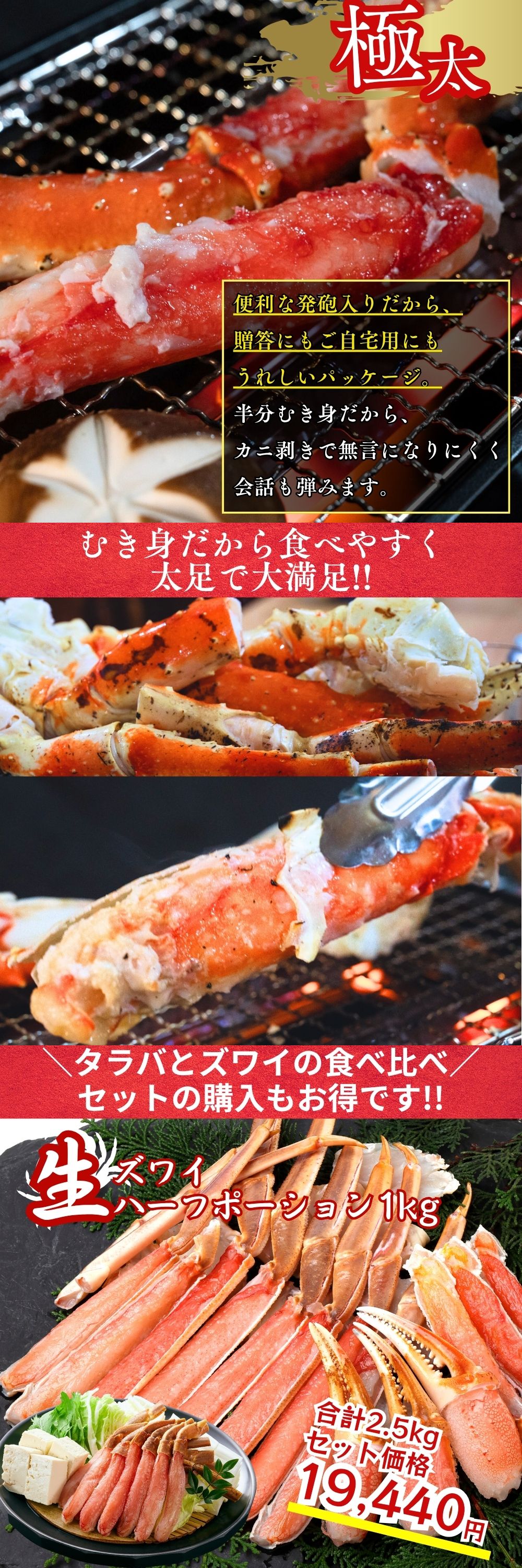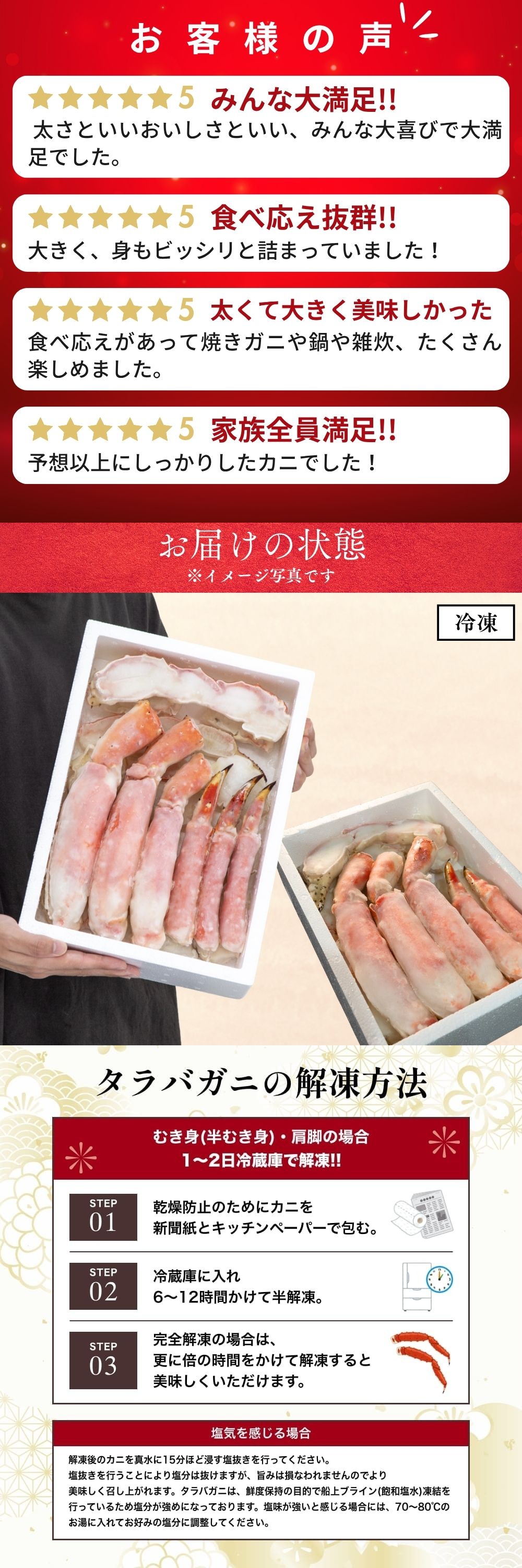 ※賞味期限間近の大特価※【生食可】ボイルタラバハーフポーション 約1.5kg 発泡入×2パック 約3kg 賞味期限2026年8月31日