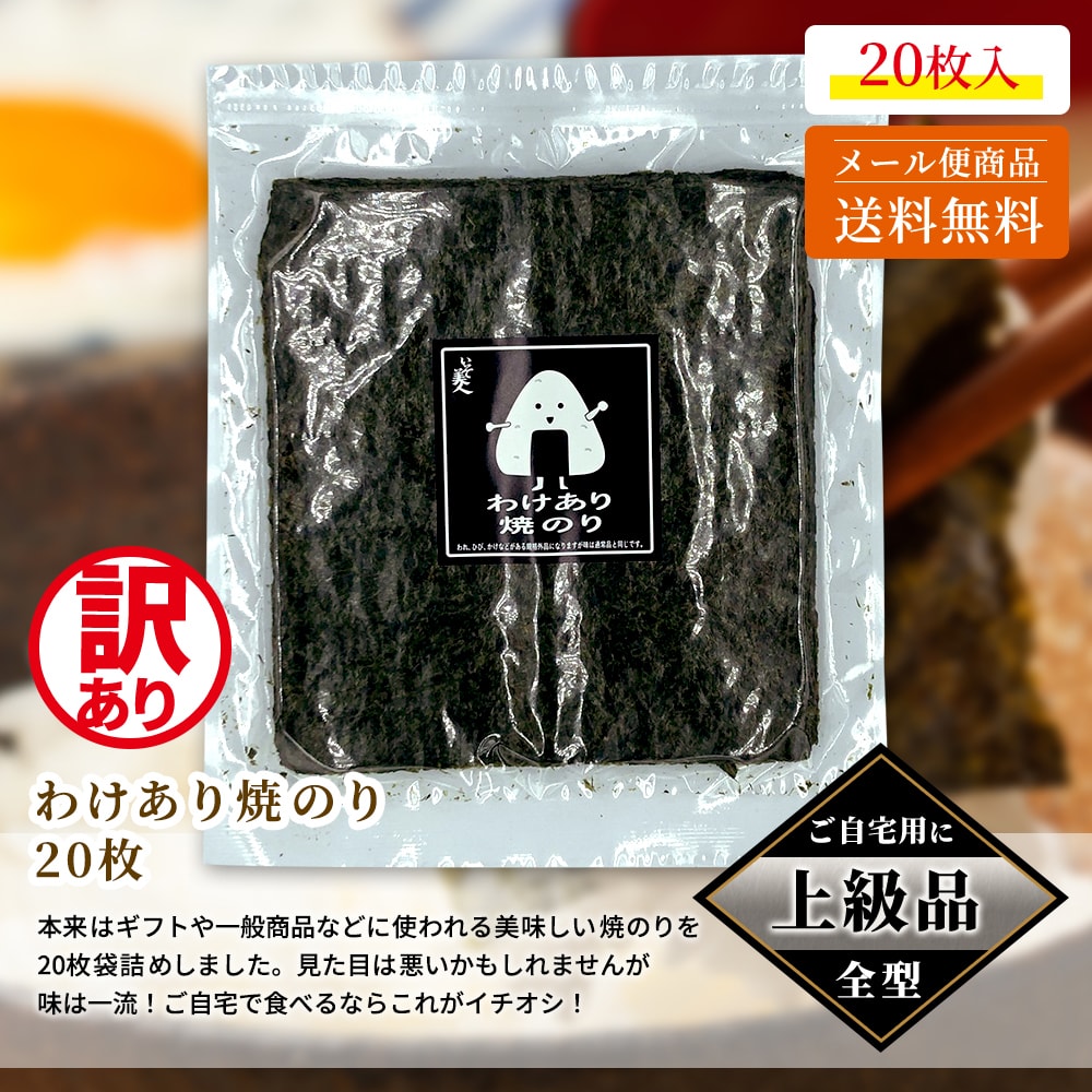 【上級品】磯美人 わけあり焼のり 20枚 本来は、ギフトや上級な一般商品に使われる焼のりですが、製造工程でわれ、ひび、かけ等が出来てしまった為に規格外品になってしまった美味しい焼きのりです。
