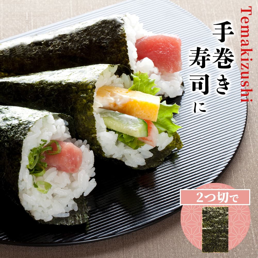 栄養成分(板のり1枚当たり)熱量:9kcal/たんぱく質:1.2g/脂質:0.1g/炭水化物:1.3g/食塩相当量:0.04g