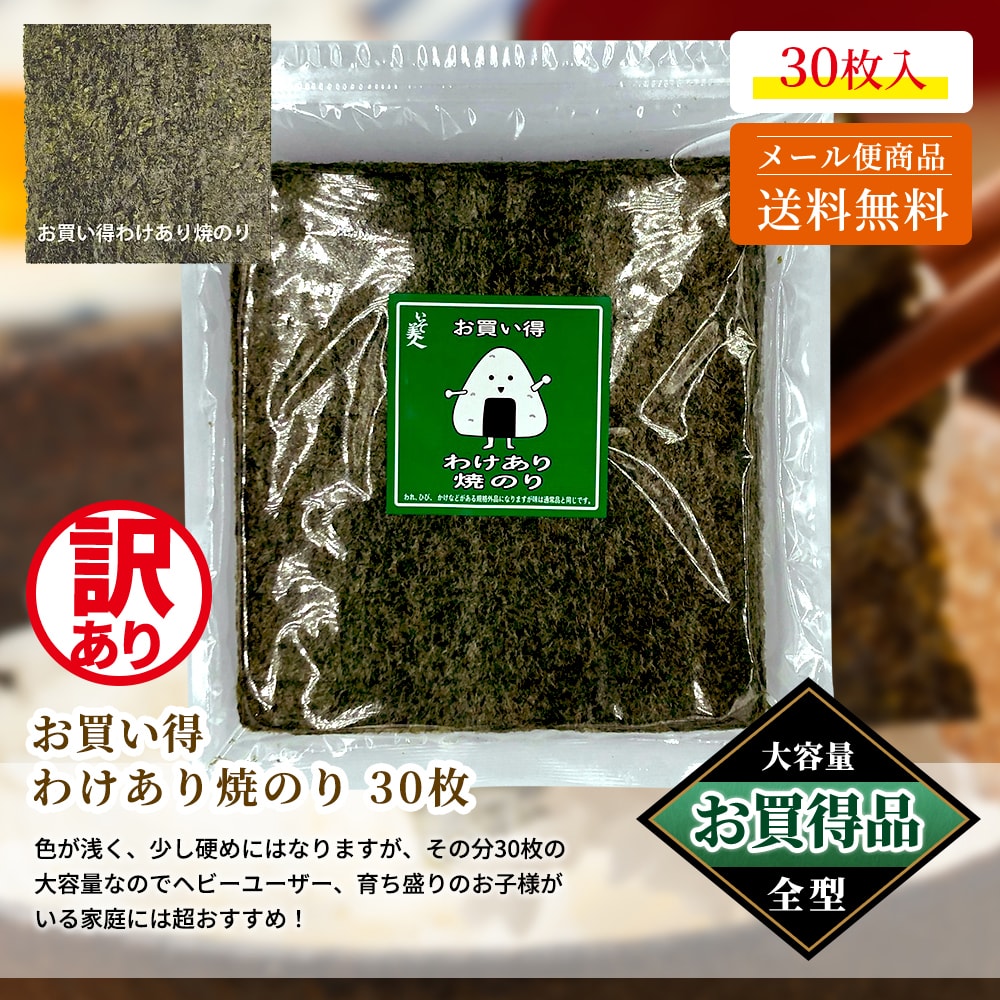 磯美人 お買い得 わけあり焼のり 30枚 製造過程でわれ、ひび、かけ等が出来てしまった為に、規格外品になってしまった焼のりです。