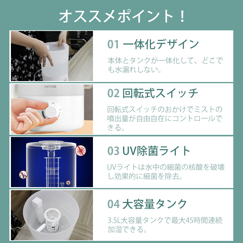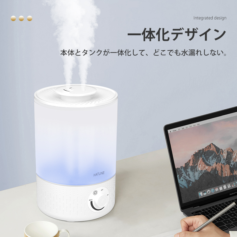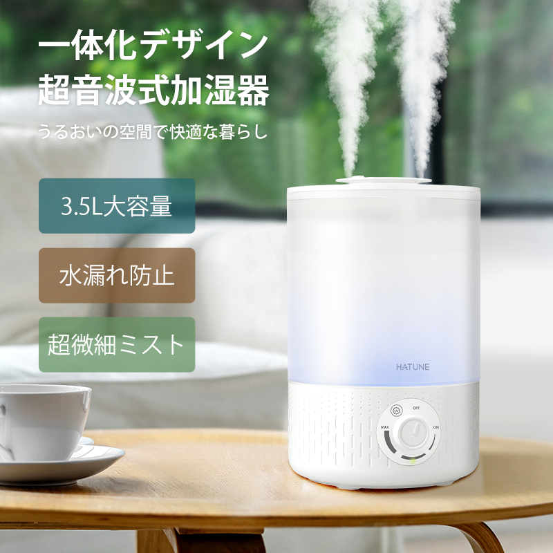 加湿器 卓上 3.5L 大容量 一体化デザイン 超音波 加湿器 おしゃれ UV 超微細ミスト アロマ対応 静音 省エネ 空焚き防止 加湿器 上部給水 オフィス リビング