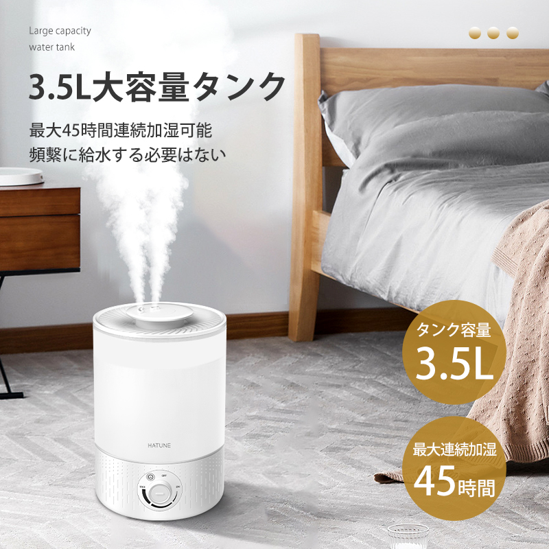 5 3.5L大容量水タンク:1回給水で最大45時間加湿できます。