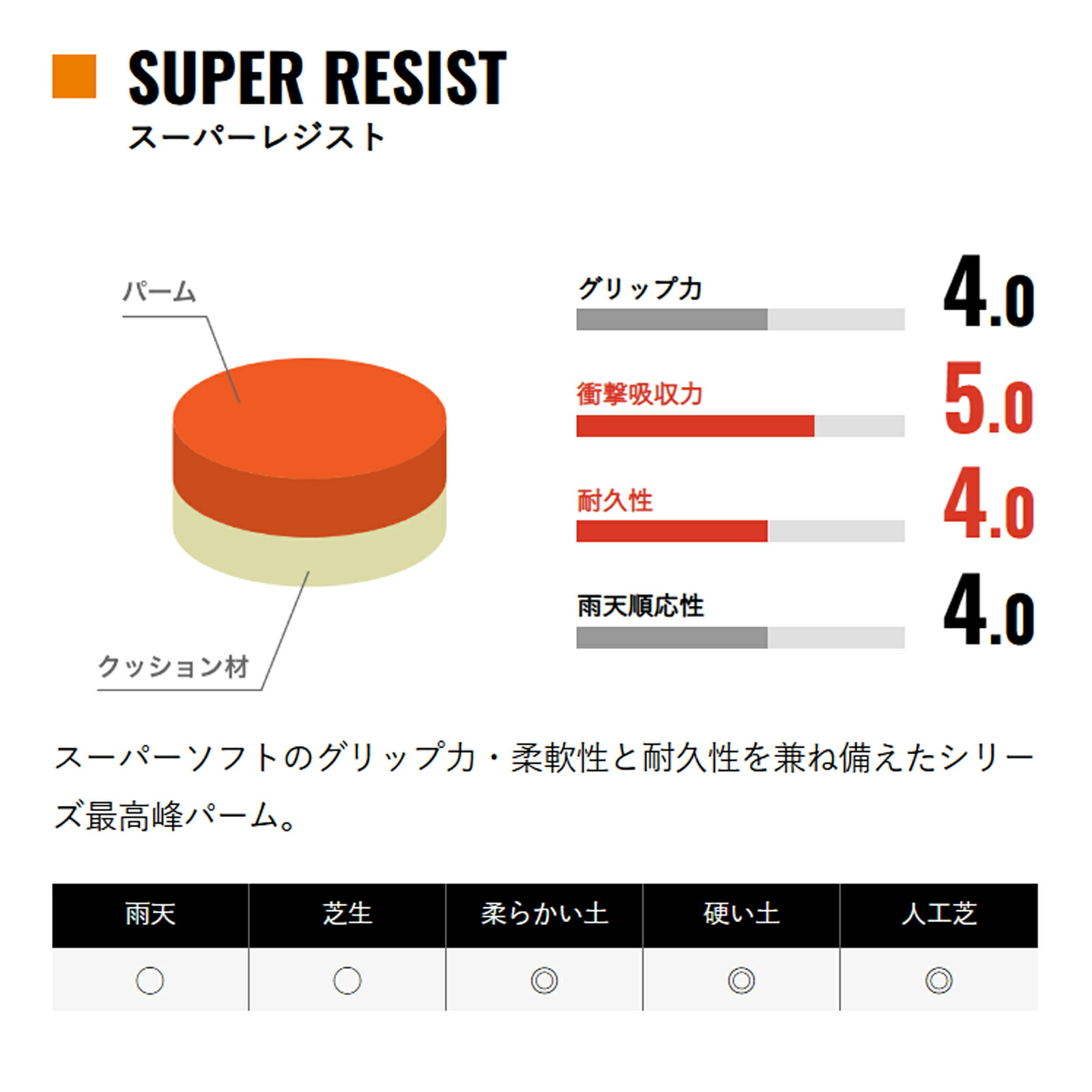 耐摩耗性チップを配合し、各カテゴリーパームとのコンビネーションでグリップ力と耐久性を高めている。