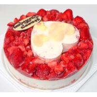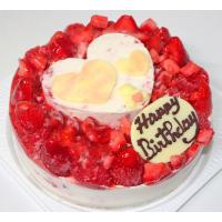 ひんやり冷たいアイスクリームケーキ! いちごを入れた生乳アイスクリームにフローズンいちごをたっぷりのせ、ストロベリーアイスクリームのハートをのせ、ホワイトチョコの飾りでかわいくお洒落にデコレーションしました。