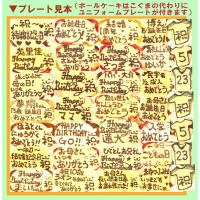 プラスチックや紙等で作られた飾りやピックなど食べれないものはケーキの上にのせたくありません。市販の口どけの悪いプラチョコのプレートは使用せずプレートはクーベルチュールで手作りしています。そのためちょっといびつだったり小さな水滴がついたりはおいしさの証でもあります。