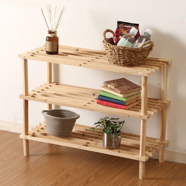 3段/ラック/木製/棚/シェルフ/収納/家具/収納棚/収納ラック/多目的ラック/おしゃれ/ウッドラック/ディスプレイ/ナチュラル/グリーン/シンプル/オープンラック/シューズラック/靴/スリッパ/ガーデンラック/新生活