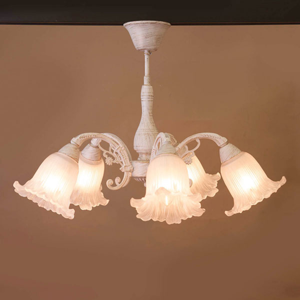 シャンデリア 5灯 クラシカルシーリングランプ LED電球対応 E26 照明器具 ロクサーヌ シンプル モダン 低い天井 45cm おしゃれ ゴージャス ランプ 照明 ホワイト