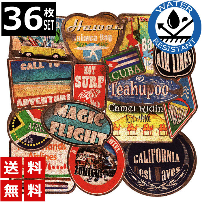 36枚 ステッカー レトロビーチ 防水 耐水 シール 詰め合わせ 車