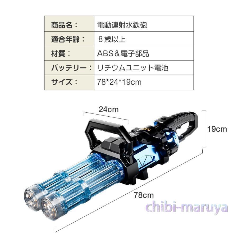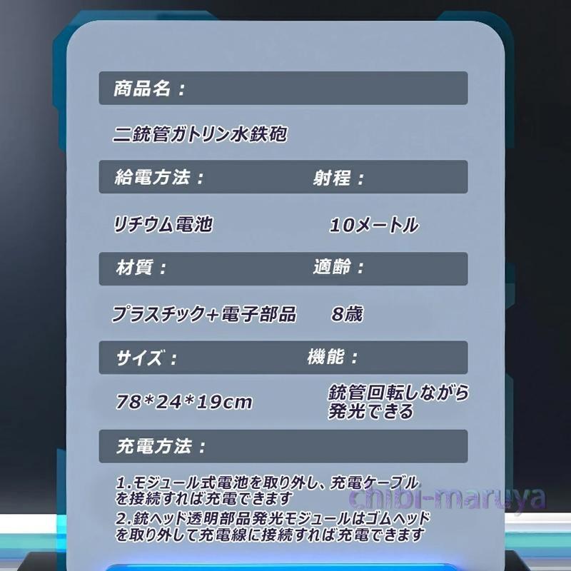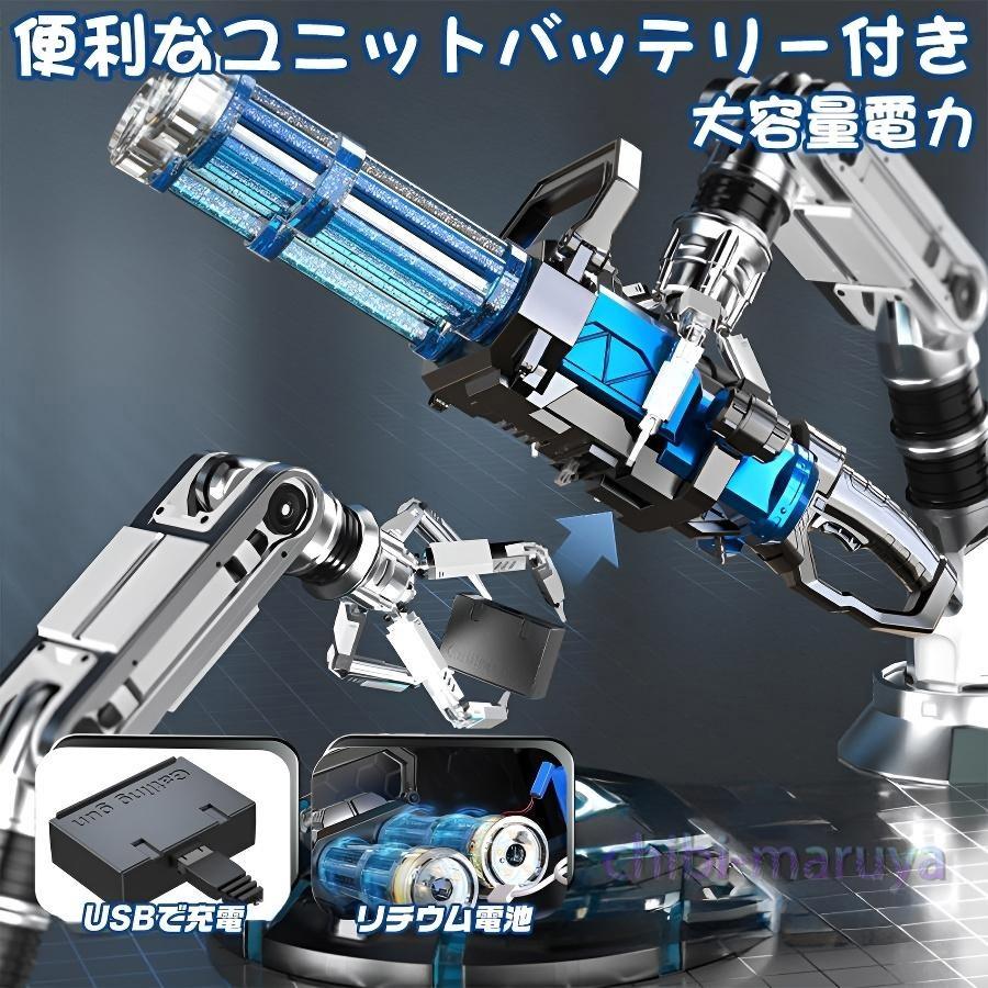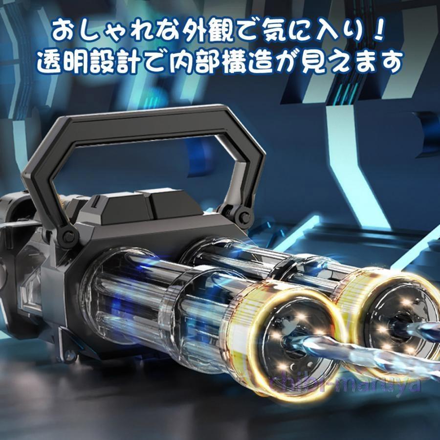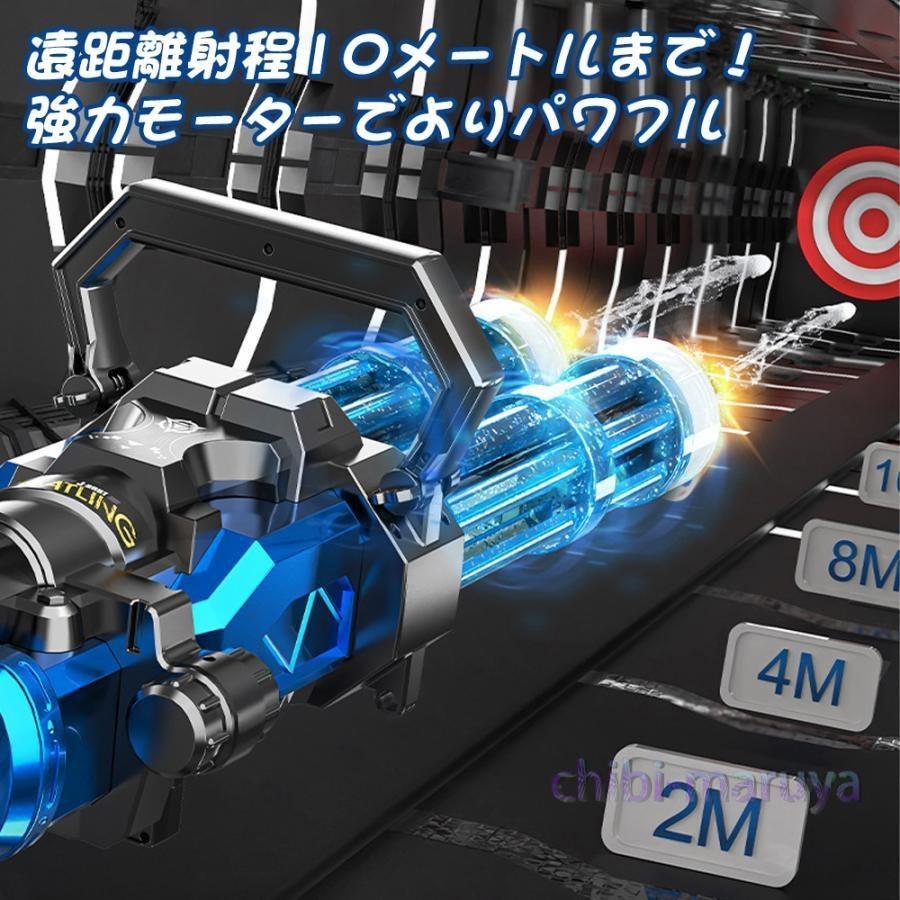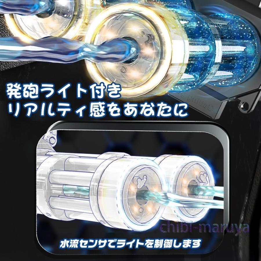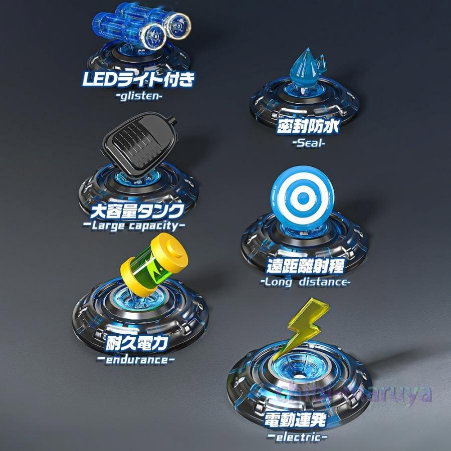デザインは、クールなガトリングスタイルを採用しており、発光機能も搭載されているため、夜間や暗い場所でも目立つこと間違いなしです。自動発射機能が付いているため、連続して水を発射でき、アクションゲームがよりリアルでエキサイティングになります。