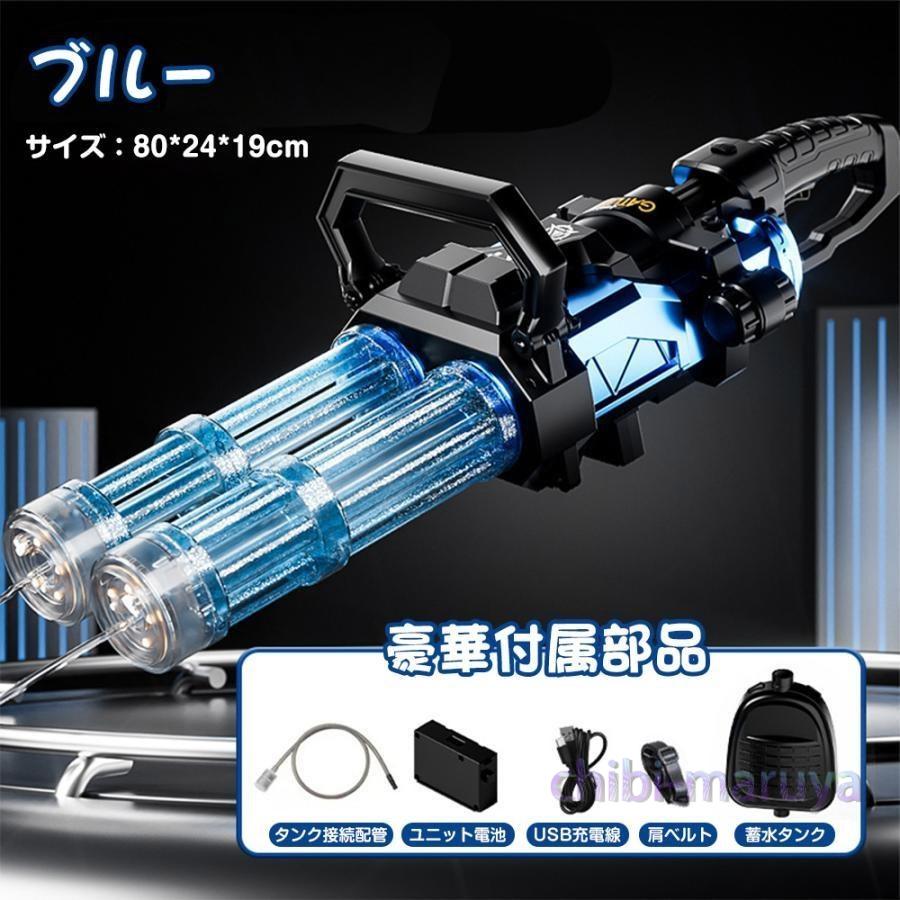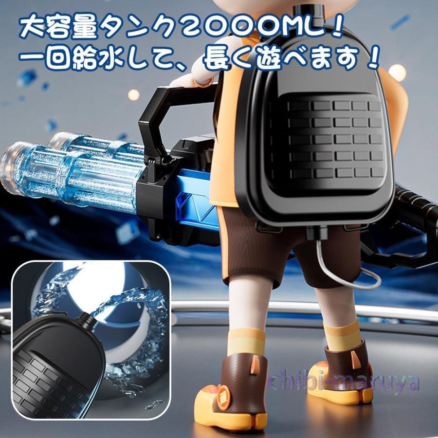 水鉄砲 電動 ウォーターガン 二銃管 2000ML 大容量水背嚢 ガトリン 加圧式 超強力飛距離 10M 高速連発 自動 発射 LEDライト 水遊 玩具 子供 海 夏祭り 夏の定番