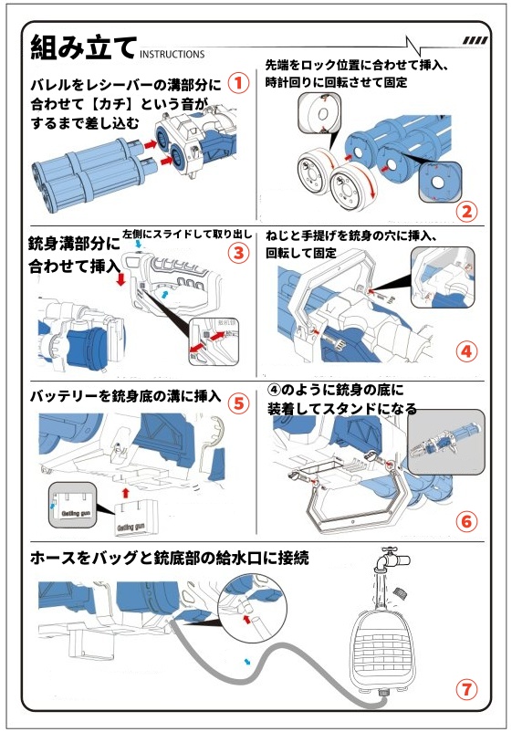 2、2000ml水背嚢。プールあるいは海で外水管を接続して無限発射は実現可能