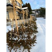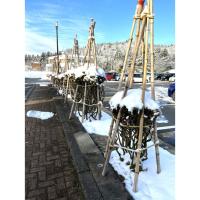 土に挿しやすいように根元を斜めにカットしていますので、樹木・庭木の雪囲い用、家庭菜園やガーデニングでの添え木支柱としていかがでしょうか。