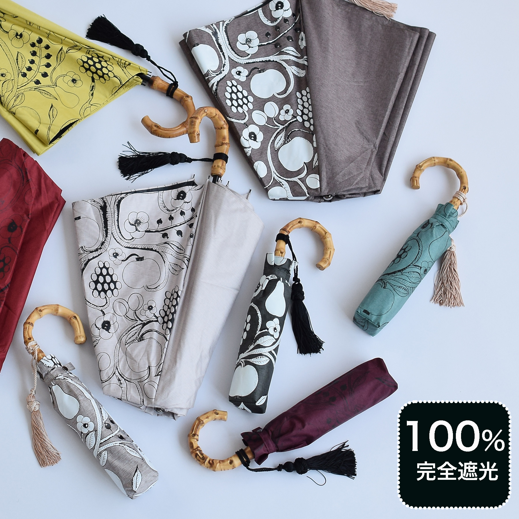 ここでしか買えないプレミアムデザインの100%完全遮光日傘をおでかけのお供にどうぞ。