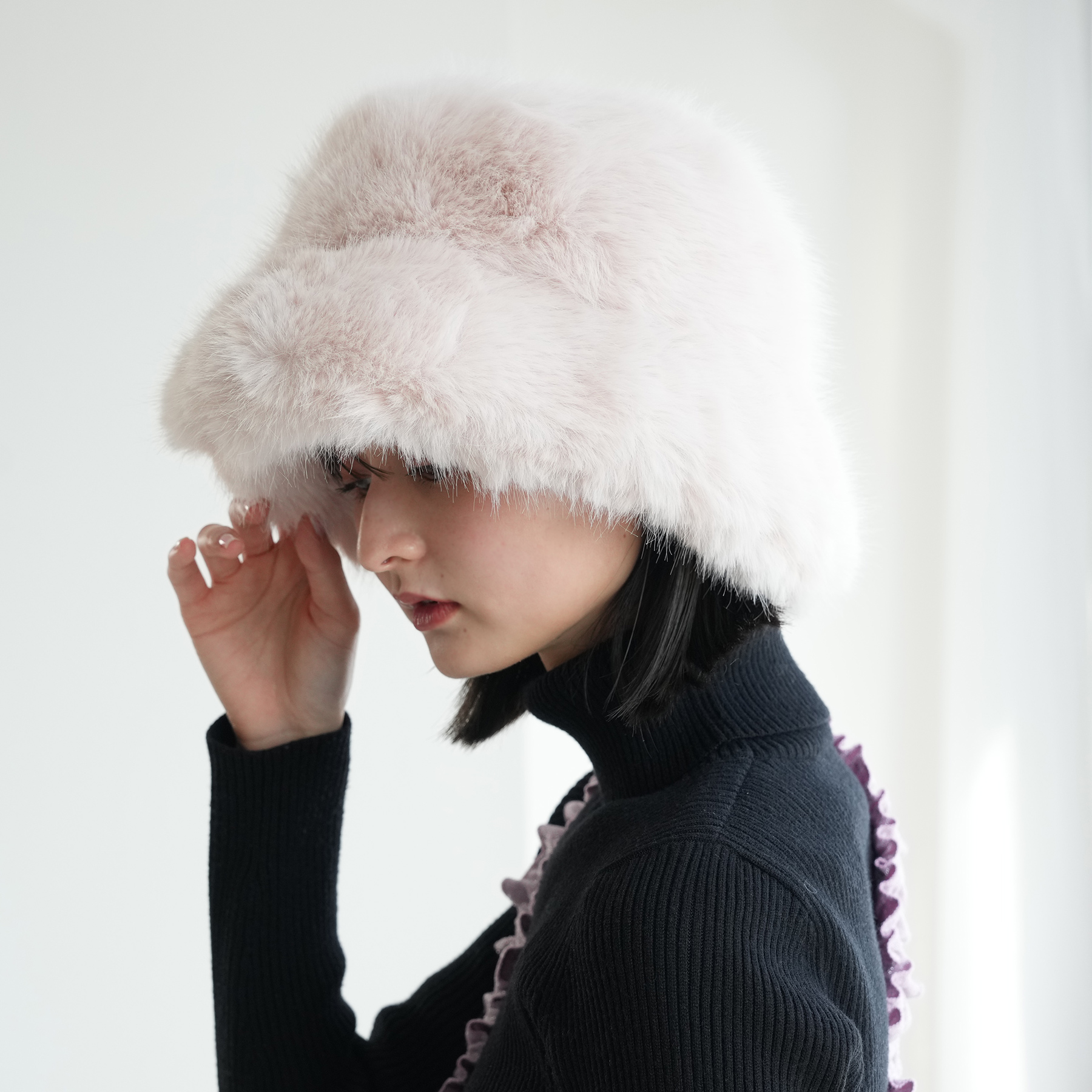 ボリュームたっぷりのファーでトレンド感をぐっと高めてくれるバケットハット。