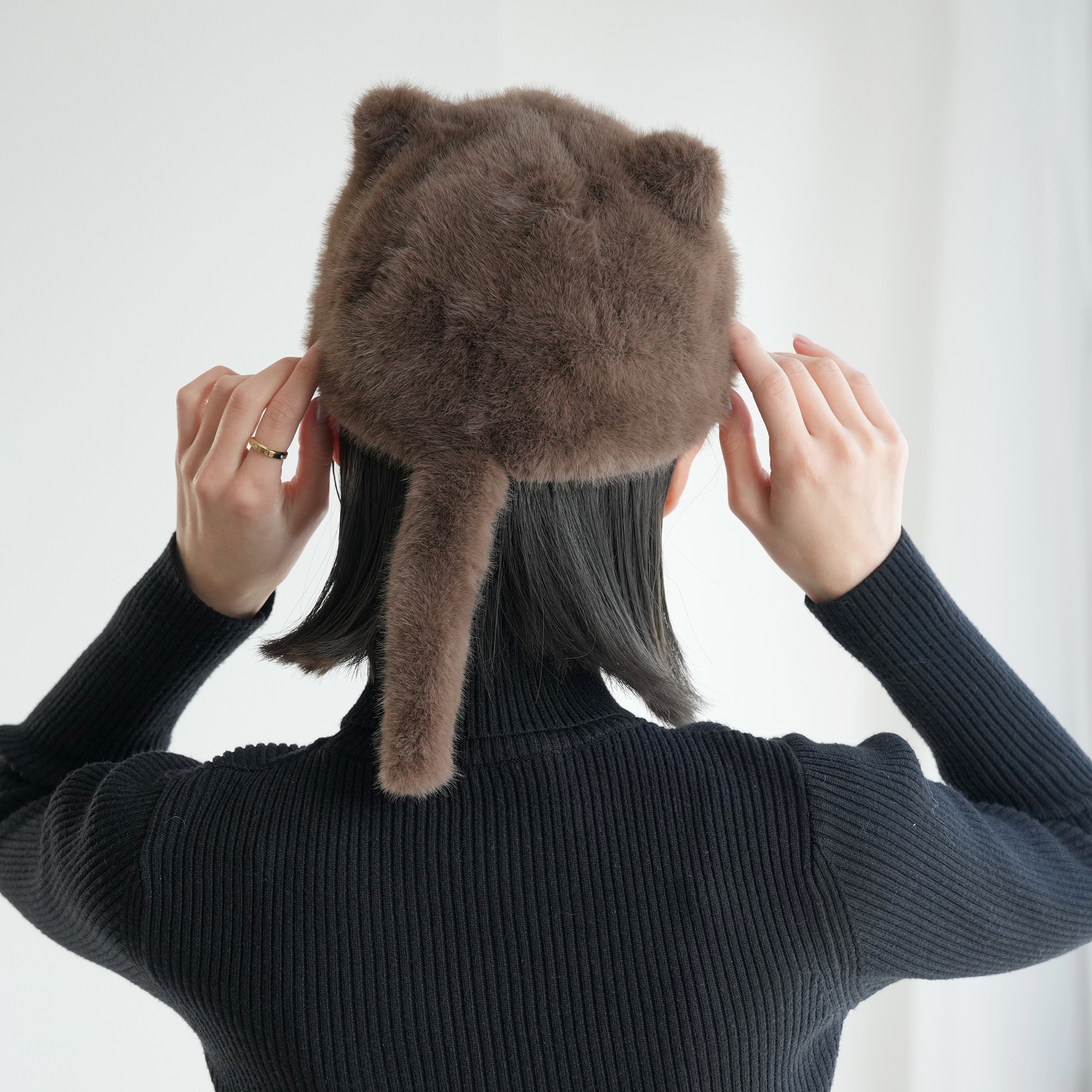 ふわふわファーで被り心地も暖か。
