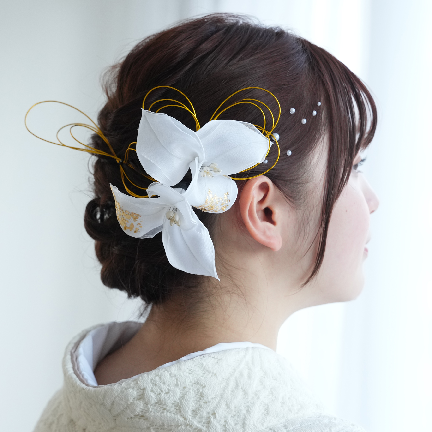 髪飾り 花 成人式 百合 ゆり Uピン2本セット 日本製 ヘアアクセサリー 白 銀 シルバー 金 ゴールド 浴衣 振袖 卒業式 袴 和装 洋服にも 結婚式 小さめ
