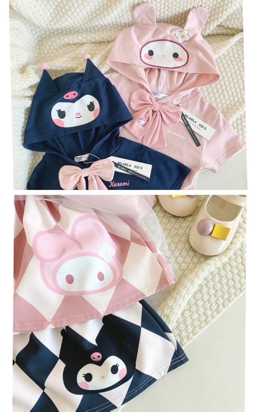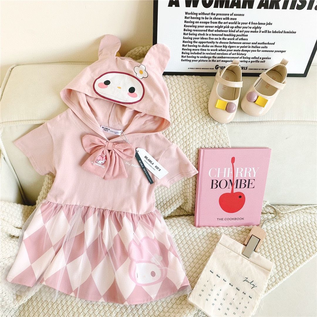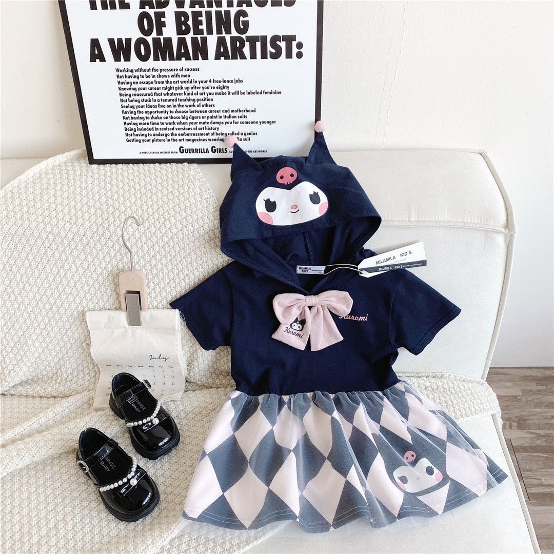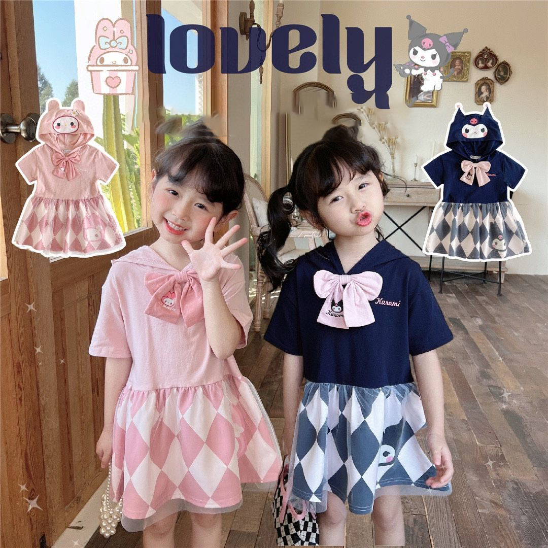 女の子 ワンピース 半袖 フード付き クロミ メロディ キッズ 子供服 夏 カジュアル 可愛い ガールズ 普段着 90-140 cm