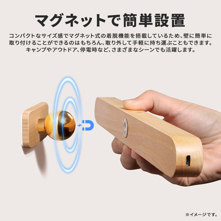 LEDライト ウォールライト 充電式 コードレス マグネット式 小さい 北欧 モダン 間接照明 木製
