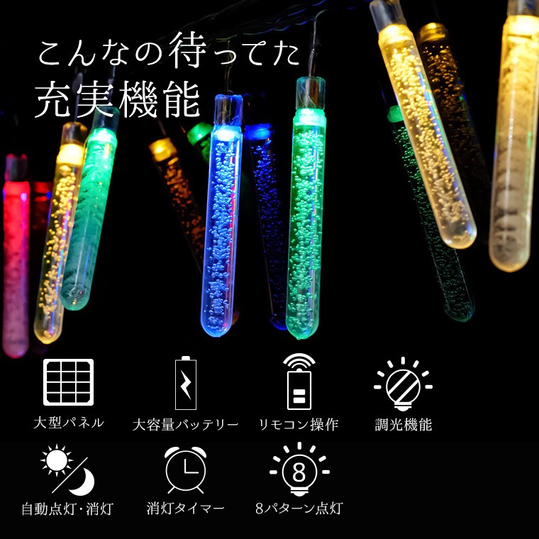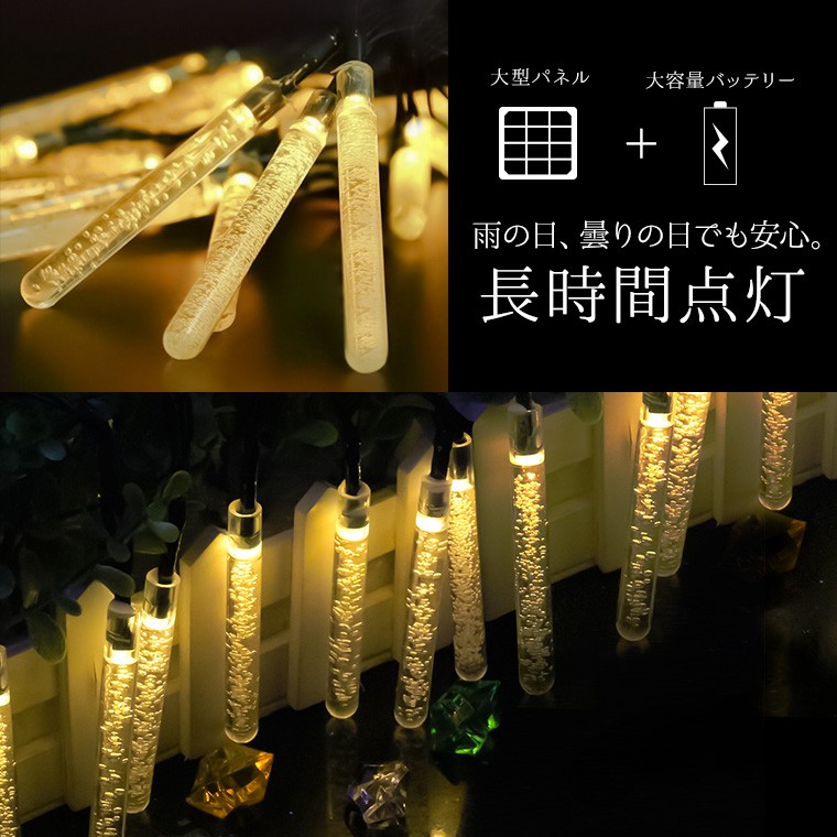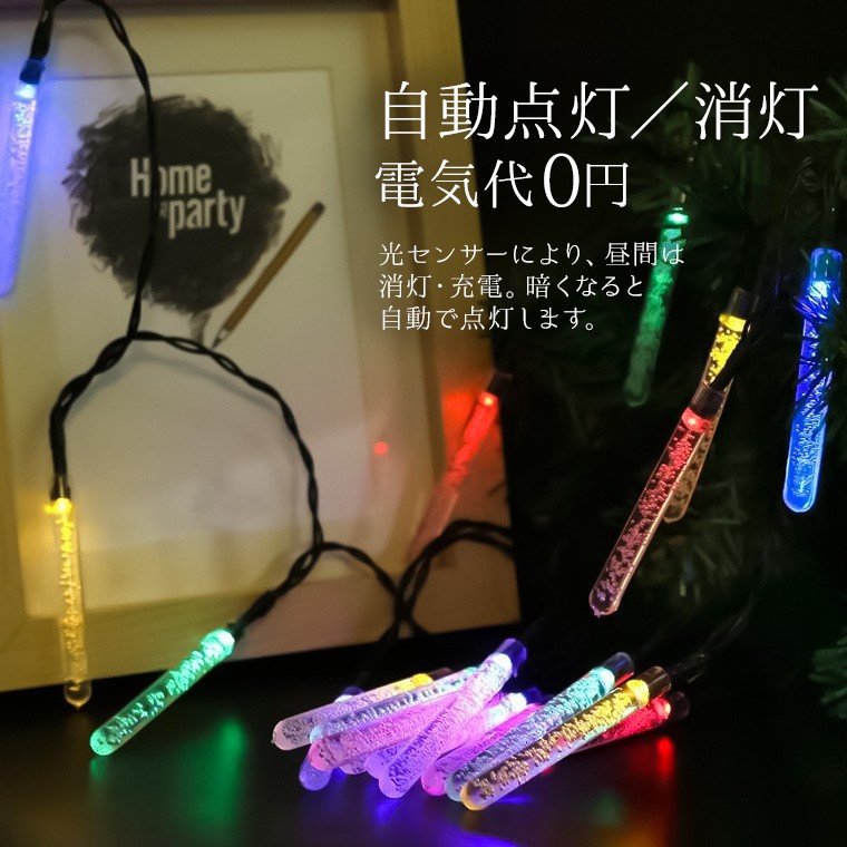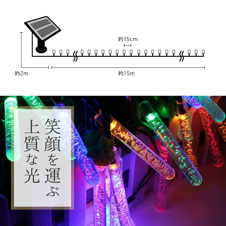 ・電源の心配なし。ソーラー充電式だから、屋外コンセントの有無に左右されずに飾りつけ(設置)が可能です。