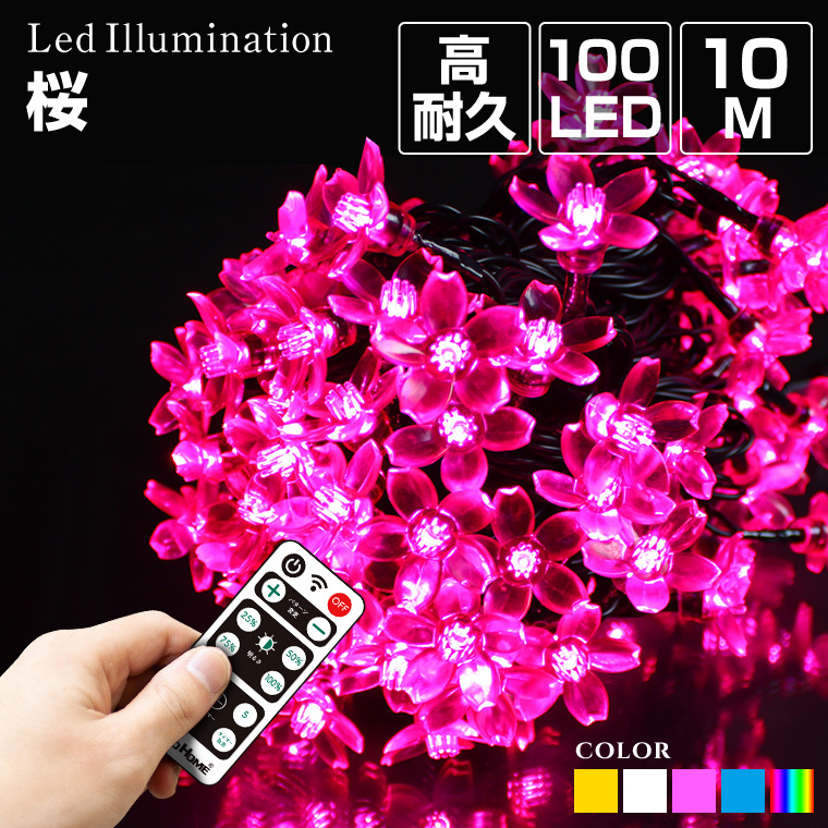 ◆かわいい桜ソケットのイルミネーションライト通年飾れる花型ソケットの特徴のイルミネーション。可愛いソケットが消灯時も飾り付けた場所を演出します。屋外・屋内のクリスマスツリーはもちろん、花壇の周りや植木など様々な場所に合います。