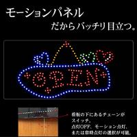◆様々な業種で重宝する「OPEN」の案内板。サインボードは明るくてナンボ、と言っていいほど。店舗が営業中であることを抜群の明るさを誇る当商品が、前を通るお客様へゴージャスにお知らせします。そして、LEDライトはモーション点灯で、動きのある点灯パターンが見ている人を楽しませます。
