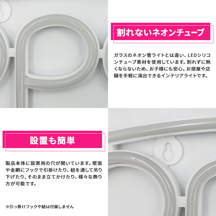 ◆割れないから安全ガラスのネオン管ライトとは違い、LEDシリコンチューブ素材を使用。割れずに熱くならないため、お子様やペットにも安心。