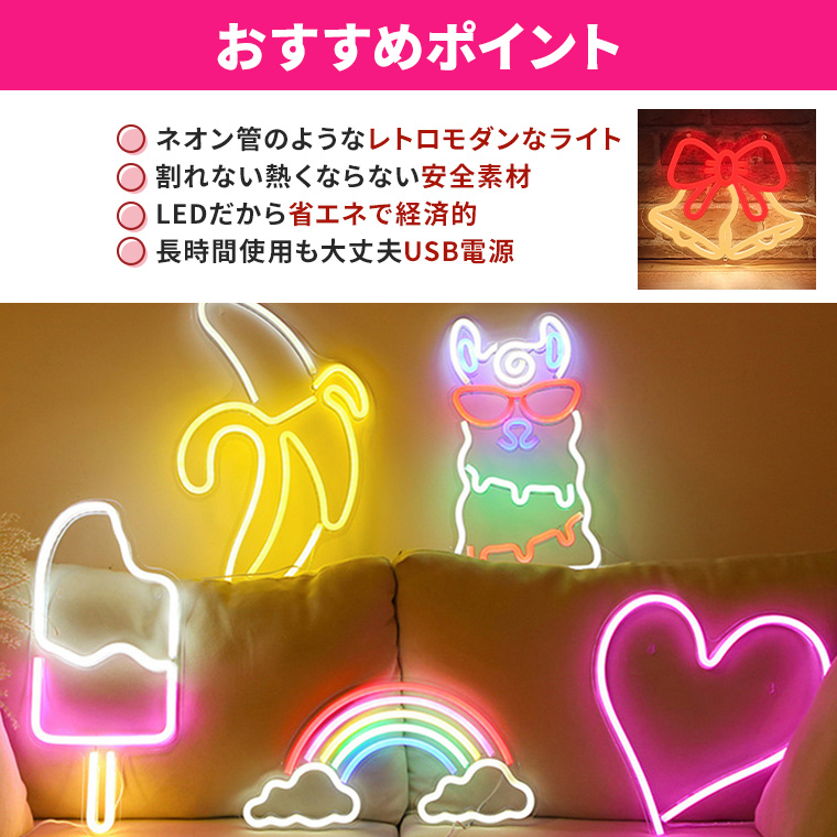 ◆レトロで新しいネオンライトカフェやバーにあるネオンサイン風のランプが登場!存在感のあるモチーフとLEDの鮮やかな光がおしゃれな空間を演出。