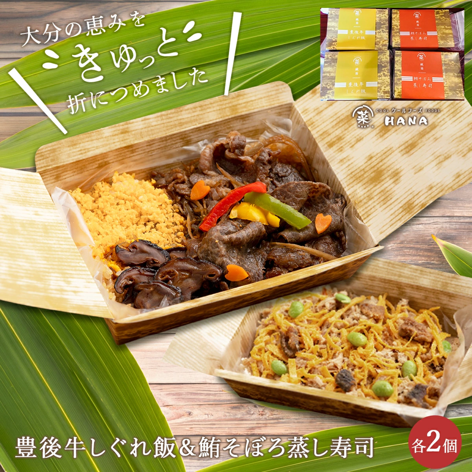 | 商品名 | 豊後牛しぐれ飯&鮪そぼろ蒸し寿司 各2個 |