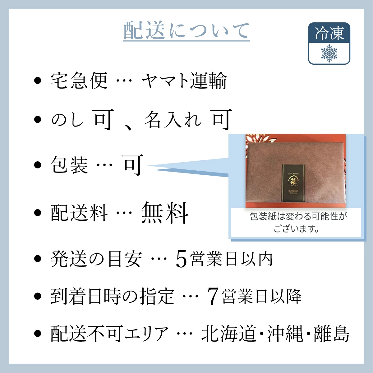 | 配送不可エリア | 北海道・沖縄・離島 |