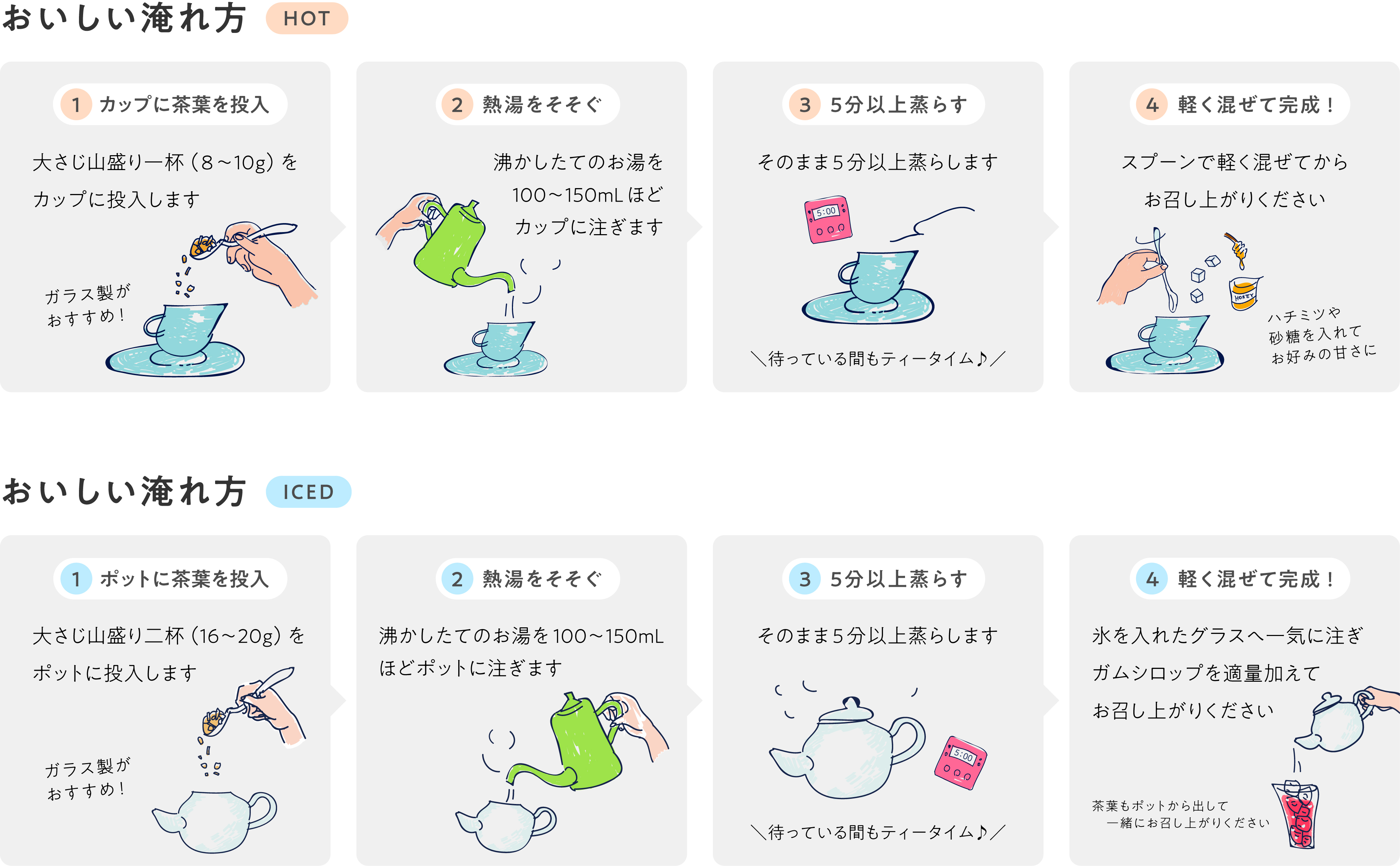 ・熱湯のお取り扱いには十分ご注意ください。熱湯を注ぐグラス、カップ、ポッドは耐熱ガラス製の物をご使用ください。