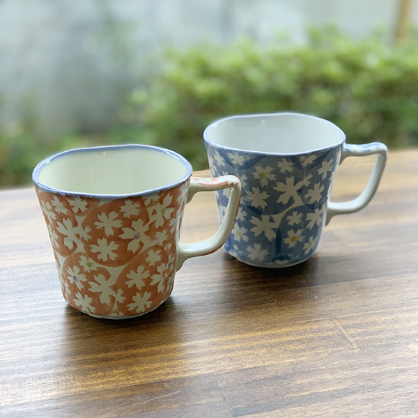 【アウトレット】有田焼 なぶりマグカップ ジャスミン(青・赤)
