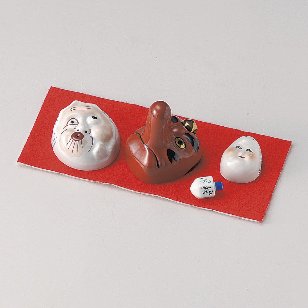 | セット内容:てんぐ杯、ひょっとこ杯、おかめ杯、コマ、各1個・毛せん付(箱入り) |