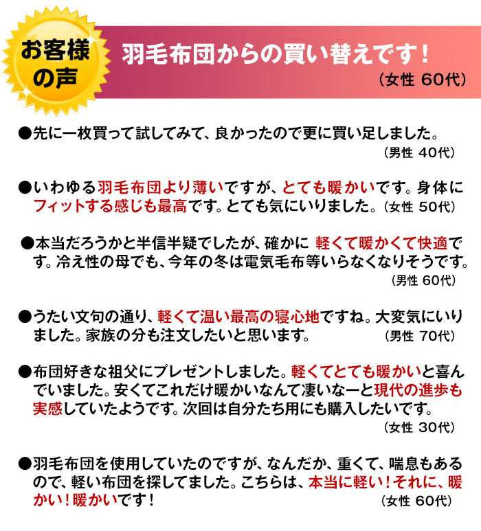 羽毛に負けない暖かさ。日本直販オリジナル掛け布団。