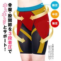 歪んだ骨盤・股関節まわりを3種類の着圧でキュッと補正。股関節を安定させることで歩行や階段の昇り降りをラクに。よく伸びてお腹に食い込みにくく、アウターに響きにくい薄手仕様です。股上深めで丸まりにくく、股下は長めでずり上がりにくいデザインに仕上げました。