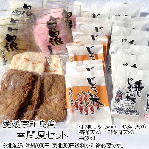 愛媛 宇和島 幸問屋セット 手作り 練り物セット (手押しじゃこ天6枚 じゃこ天6枚 野菜じゃこ天3枚 野菜身天3枚 削り節8袋)