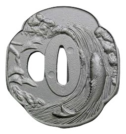 送料無料 鍔 TU-26 鯉の図 黒 つば