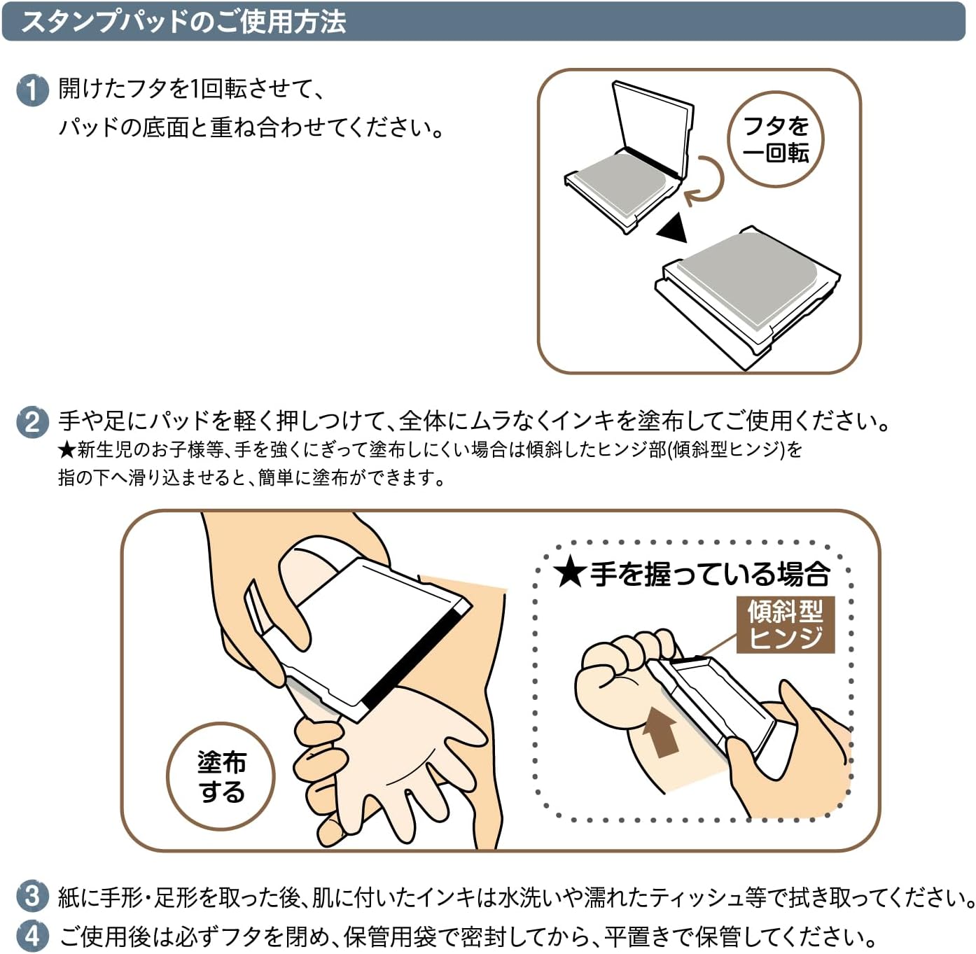※紙に手形や足形を押す用途以外に使用しないでください。