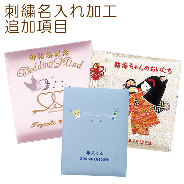 また「○○くんのアルバム 2」などタイトルの最後に数字や文字を入れる場合も追加料金がかかります。「刺繍名入れ加工追加項目」を一緒にご注文ください。