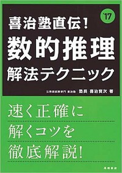 喜治塾直伝!数的推理解法テクニック 〔2017年度版〕/高橋書店/喜治賢次(単行本(ソフトカバー)) 中古